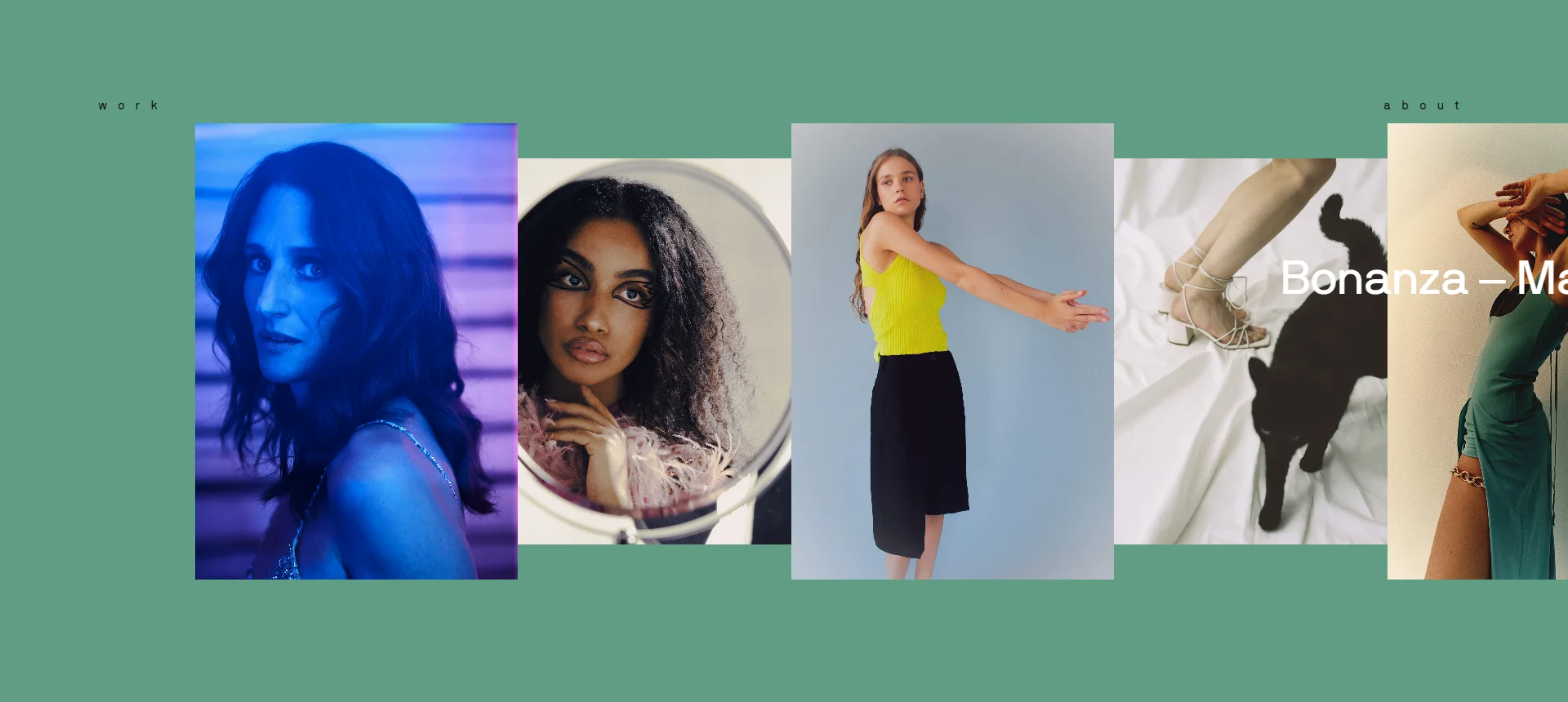 La paleta cromática es increÍble,un color distinto se despliega a medida que pasamos el mouse por encima de una imagen, podemos hacer scroll lateral y apreciar como frente a nosotros cambian los colores gradualmente (variando los tonos) produciendo alto contastre y captando de inmediato la atención. (Esto describe la experiencia desde el ordenador). El ritmo al que pasan las imágenes recopila tan gratamente el gesto de la mano al revisar una percha de ropa, razón por la cual no podÍa no incluirse en los antecedentes de este proyecto. Los resultados en Lighthouse respaldan este gran trabajo: Performance: 92 Accesibility: 96 Best Practices: 92 SEO: 100 .Para Desirability se le ha asignado un 95 la interactividad basada en movimientos y contrastes me invita a ver el contenido.
